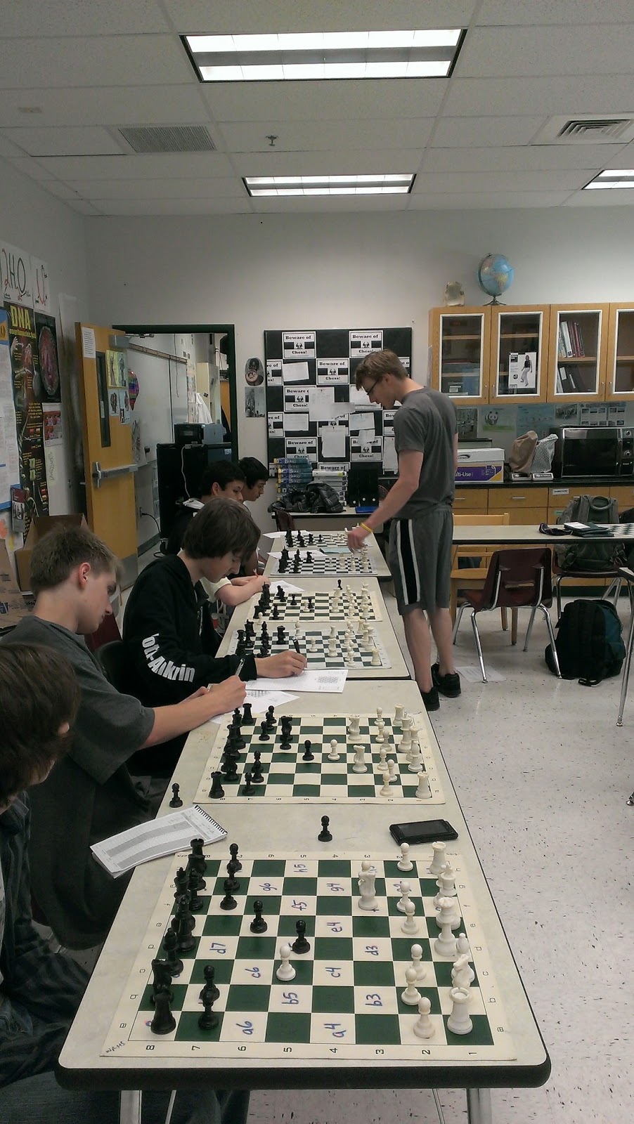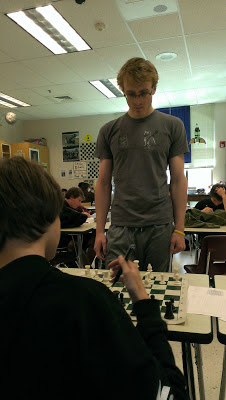 As we played and kids poured into seventh period and immediately needed me for this or that, I pretty much abandoned my game with Johnny, however, the thought crossed my mind . . ."You doin' anything for the next hour?" I asked Johnny. Nope. Good. Johnny succumbed and agreed to play five students. I set up six (I resented the fact that he beat me through my school distractions - just like old times!).